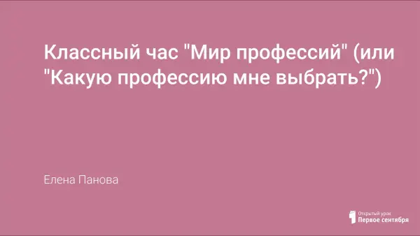 Этот классный час откроет вам огромный мир профессий, ведь зачастую человек просто не знает о существовании целого ряда профессий, а как раз та, единственная - которая его может сделать счастливым - ему пока неизвестна.