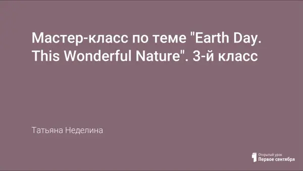 Мастер-класс по теме "Earth Day. This Wonderful Nature". 3-й класс