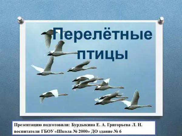 Цель урока: уточнить и расширить представления о перелётных птицах в весенний период.