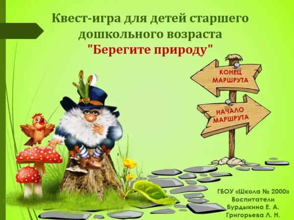 Цель квеста: сплочение детского коллектива; развитие экологической культуры.