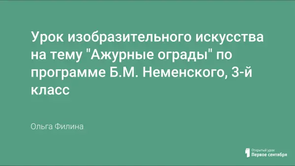 Конспект занятия рассказывает о том, каким ярким и интересным может быть урок по изобразительному искусству: ведь на занятии ребята совершают виртуальное путешествие по разным городам и странам. Главная задача - развитие у ребят умения видеть и ценить труд художников, создавших неповторимый облик городов. На этом уроке школьники создают макет ажурной ограды, беря за основу свою фантазию и природные аналоги.