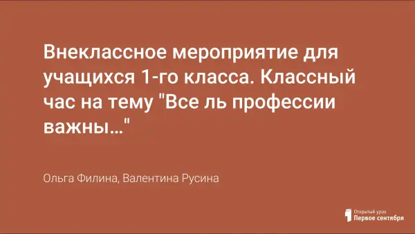 Внеклассное мероприятие для учащихся 1-го класса. Классный час на тему "Все ль профессии важны…"
