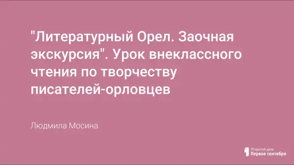 Урок внеклассного чтения по творчеству писателей-орловцев «Литературный Орел (заочная экскурсия)». Использование компьютерной презентации позволит учащимся побывать в тех местах г. Орла, которые связаны с творчеством и жизнью И.Тургенева, Н.Лескова, Л.Андреева, И.Бунина. На уроке звучат строки произведений великих писателей, проводится литературная викторина, учащиеся разгадывают кроссворд.