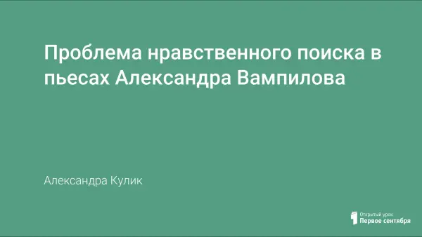 Основная цель урока — познакомить учащихся с личностью писателя-драматурга, выявить своеобразие решения темы нравственного поиска в творчестве А.Вампилова.