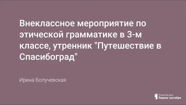 Представлен конспект внеклассного мероприятия по этической грамматике в 3-м классе. Целью данного мероприятия является закрепление умения оценивать корректность речевого поведения, использование этикетных форм вежливости, тона вежливой речи.