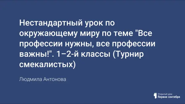 Данный урок даёт представление ученикам о многообразии профессий и их важности для людей. Урок проводится в нестандартной форме, что позволяет развивать познавательные и творческие способности обучающихся.