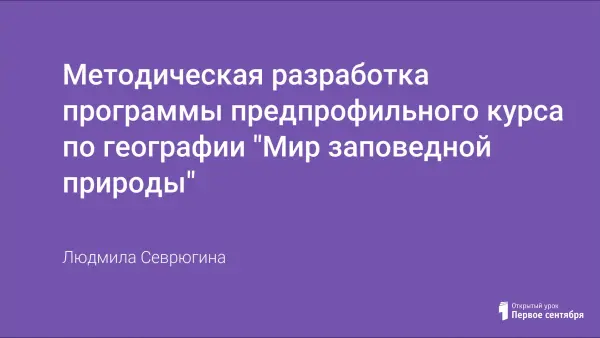 Изучению особо охраняемых территорий уделяется мало времени как в учебном процессе общеобразовательных школ, так и в учреждениях дополнительного образования детей. В статье представлена методическая разработка предпрофильного курса географии по экологическому воспитанию девятиклассников.