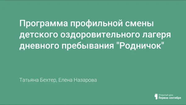 Программа профильной смены детского оздоровительного лагеря дневного пребывания "Родничок"