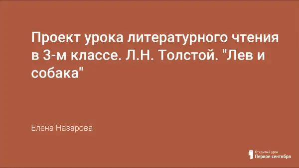 Проект урока литературного чтения в 3-м классе по произведению Л.Н. Толстого «Лев и собачка». Урок способствует полноценному восприятию художественного произведения, учит понимать образный язык, обогащает чувственный, нравственный и познавательный опыт ребенка, обеспечивает достаточно глубокое понимание содержания текста.