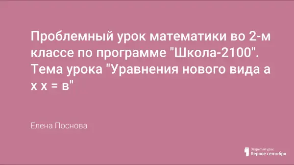 Цель урока - научить детей решать уравнения вида <span class="math">a*x=b</span>, активизировать мыслительную деятельность на уроке. Использование компьютера, постановка проблемной ситуации и самостоятельный выбор заданий способствовали творческому применению полученных знаний и возможности проявить поэтические, художественные, музыкальные способности обучающихся.