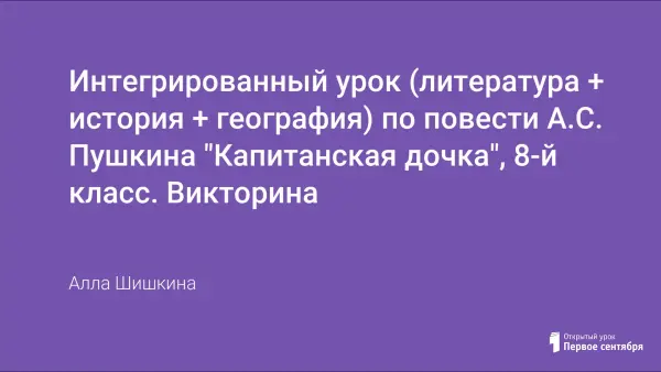 Игра-викторина помогает повторить фактический материал по повести А.С. Пушкина «Капитанская дочка». Игра способствует формированию целостного представления о событиях крестьянской войны под предводительством Пугачева на основании изученного по истории и географии, развивает интерес к предмету.