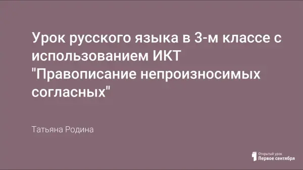 Цель урока - закрепление умения находить в словах и проверять изученную орфограмму. На данном уроке ИКТ используются в качестве наглядно-иллюстративного материала, электронной доски, средства для индивидуальной работы и проверки знаний.