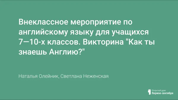 Внеклассное мероприятие по английскому языку для учащихся 7—10-х классов. Викторина "Как ты знаешь Англию?"