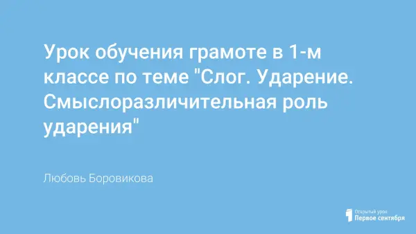 Вводя слогоделение, необходимо понимать его исключительную важность для будущих действий письма и чтения. Это урок изучения нового материала, на котором формируется умение делить слова на слоги, находить ударный слог.