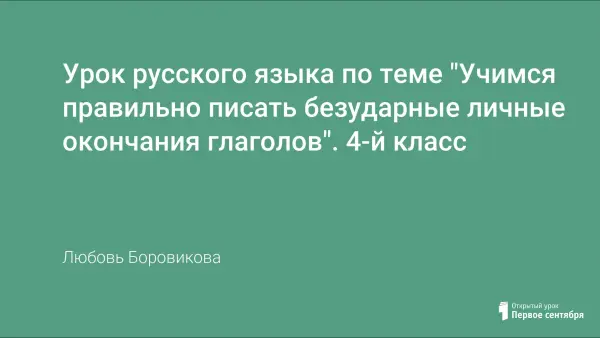 Урок русского языка по программе «Перспективная начальная школа» формирует у учащихся умения правильного написания безударных личных окончаний глаголов. Каждый этап урока содержит задания, предусматривающие непосредственное участие учащихся в учебном процессе. ИКТ-технологии активизируют познавательную деятельность, развивавают понятийное мышление, определяют алгоритм работы, систематизируют материал.