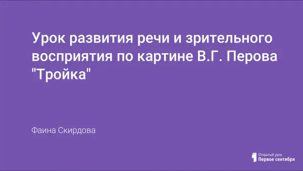 План урока развития речи и зрительного восприятия составлен для учащихся 6–8-х классов национальных школ для ознакомления с великим русским художником В.Г. Перовым и его картиной «Тройка». Основной целью урока является развитие общего кругозора, устной и письменной речи учащихся.