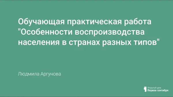 Главная цель практической работы заключается в обучении школьников приемам работы со статистическими материалами интернет-ресурсов. Десятиклассники работают с двумя англоязычными сайтами: ЦРУ и Бюро переписей населения. Они учатся отбирать информацию о рождаемости и смертности, на основе которой определяют тип воспроизводства населения; находить данные о возрастном и половом составе населения и устанавливать зависимость между типом воспроизводства населения и особенностями его состава.