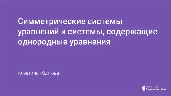Урок разработан с целью обучения решению систем уравнений, содержащих однородное уравнение и симметрические системы уравнений. В ходе урока применяется коллективный способ обучения, проектный и групповой методы обучения.