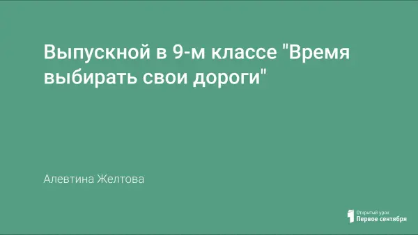 Выпускной вечер – это памятное, трогательное событие как для детей, так и для взрослых, имеющих отношение к школе. Выпускной в 9-м классе – особенное событие: часть детей покидает стены школы, а другая – остается. В данном сценарии сделана попытка сделать праздник интересным, запоминающимся для всех участников торжества.