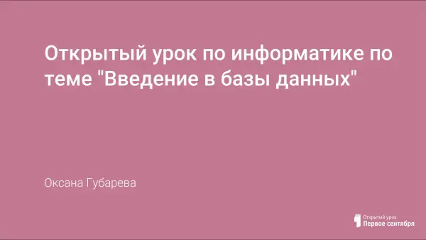Данный урок является первым при изучении темы "Базы данных" в 11-м общеобразовательном классе по программе Н.Угриновича. Освоение материала идёт через создание проблемной ситуации на уроке и ее решение. Цели урока решаются частично-поисковым методом. Для того чтобы проверить степень понимания и усвоения нового материала, проводится электронный тест.