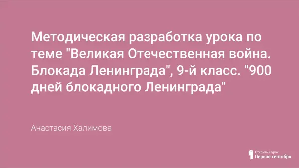Методическая разработка урока по теме «Великая Отечественная война. Блокада Ленинграда» для учащихся 9-го класса дает представления о блокаде Ленинграда, причинах ее возникновения, о героизме жителей блокадного города; развивает умение анализировать исторические события, систематизировать исторический материал; содействует воспитанию чувств патриотизма, уважения к жителям Ленинграда, гордости за свою страну.