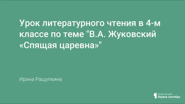 Урок литературного чтения по программе "Школа-2100" посвящен творчеству В.А. Жуковского. На уроке дети более подробно знакомятся с биографией поэта, слушают его стихи в исполнении подготовленных детей, знакомятся со сказкой "Спящая царевна".