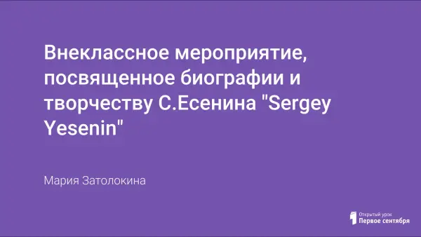 Сценарий мероприятия использует презентацию, включающую видеофильмы с музыкой русскоязычных романсов поэта. Расширяется лингвистический кругозор учащихся, знания биографии С.Есенина и его творчества, аудитория знакомится со стихами С.Есенина в английском и русском вариантах, обозначается роль и место лирики С.Есенина в русской литературе.