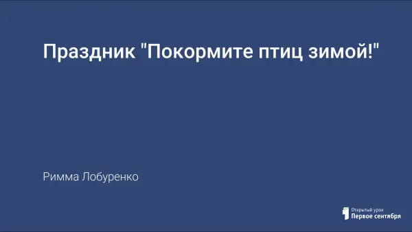 Праздник "Покормите птиц зимой!" осуществляется в зимнее время. Суть его - в создании и организации регулярной работы птичьей "столовой" на школьной территории. Дети придумывают, где лучше разместить "столовую", какие кормушки для каких птиц предусмотреть. Подготовительный этап заключается в накоплении корма и изготовлении кормушек. Открытие птичьей "столовой" проводится торжественно, после чего дети поочередно ведут наблюдение за "столовой" и дежурят в ней: подправляют кормушки, насыпают корм.