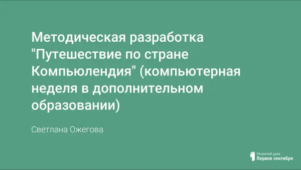 Методическая разработка компьютерной недели в дополнительном образовании. Дети должны усвоить, что умная машина - это помощник в их творчестве, развитии и познании, а не средство, убивающее время. Мы должны уберечь наших детей от компьютерной зависимости.