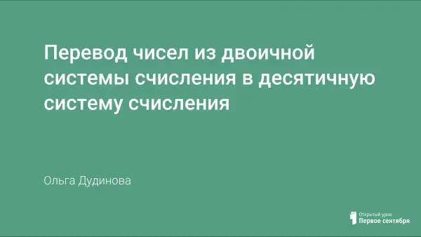 Урок посвящен формированию у обучающихся умений и навыков перевода чисел из двоичной системы счисления в десятичную систему счисления. Урок основан на межпредметных связях наук информатики и математики.