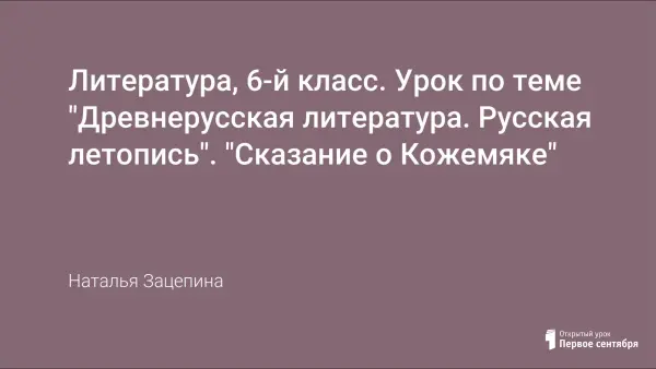 Урок литературы в 6-м классе, на котором идет речь о древнерусском летописании «Повесть временных лет», отрывке из повествовании «Сказание о Кожемяке».