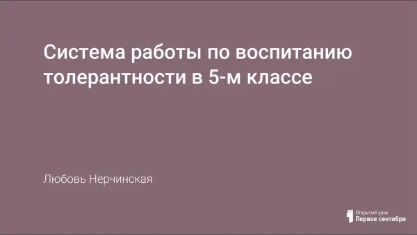Толерантность - это снисходительность к кому-либо или чему-либо, терпимость, способность понимать и уважать другую культуру, иные взгляды и различные проявления человеческой индивидуальности. Насколько терпимо современные школьники относятся друг к другу и к представителям других национальностей? Умеют ли они понимать человека и принимать его таким, каков он есть? Как воспитать толерантную личность в школе? В статье представлена система работы по воспитанию толерантности в 5-м классе.
