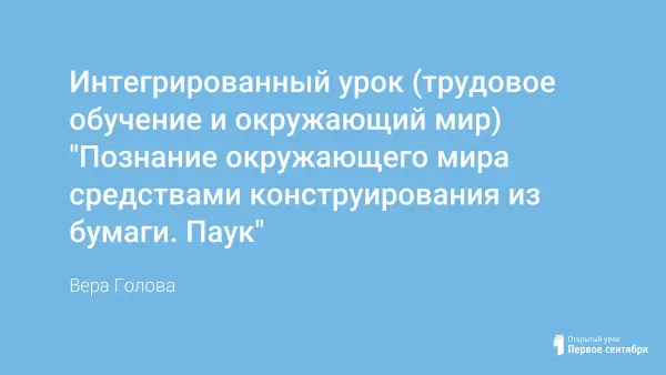 Бумага, как пластический материал, из которого можно вылепить все, что угодно: фигуры людей, зверей, птиц, насекомых, создать портреты, натюрморты, пейзажи в объеме и рельефе. Конструирование из бумаги увлекает детей, результат сразу виден. Сейчас я предлагаю попробовать изготовить из обычной бумаги модель паука. Рекомендую перед проведением урока провести подготовительную работу: дети готовят сообщения о паукообразных, просмотреть фильм "Мелкие хищники", подготовить стихи и загадки о пауках.
