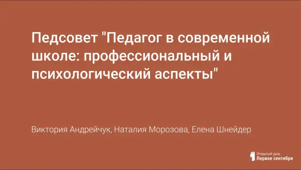 Слово "педсовет" означает советоваться, держать совет, обсуждать проблемы, волнующие педагогический коллектив. Мы постарались провести не тот педсовет, где просто заседают (просматривают классные журналы, проверяют контрольные работы, составляют планы), а совет, который принесет уверенности в своем профессионализме, вдохновение и стимул к творческому поиску. Во время проведения педсовета применялись элементы технологии "Дебаты", "Мозговой штурм". Применялись информационные технологии.