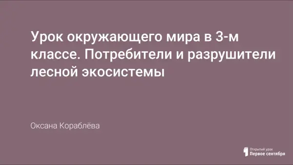 Урок окружающего мира знакомит учащихся с «жителями» леса, с их «профессиями», выявляет взаимосвязи, значимость друг для друга. Даёт детям представление о замкнутости лесной экосистемы. Воспитывает бережное чуткое отношение к природе, осознание своего места в ней.