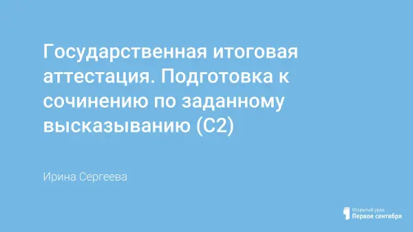 Поскольку в 2012–2013 учебном году изменился формат задания С2, главная задача учителя – научить писать сочинение по тексту – усложнилась: учащийся в первую очередь должен показать умение понимать смысл заданного высказывания и уметь находить аргументы для доказательства своей мысли, привлекая примеры из художественного текста. Работа по подготовке к такому сочинению должна носить поэтапный характер. В статье представлены этапы работы над сочинением по заданному высказыванию (С2).