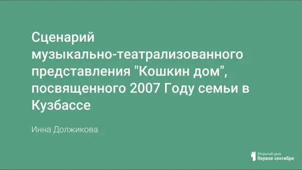 Представлен сценарий музыкально-театрализованного представления "Кошкин дом", посвященного Году семьи.