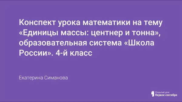 Цель урока: знакомство с новыми единицами измерения массы (тонна, центнер).