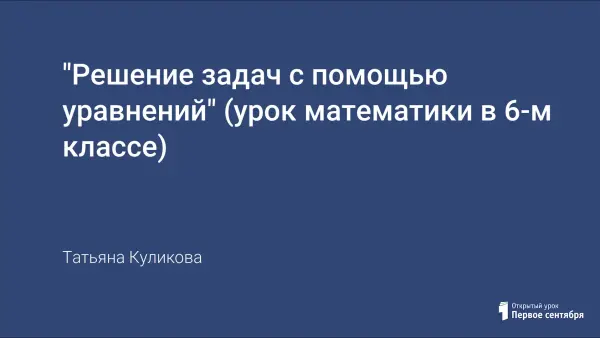 Урок математики (6-й класс) направлен на продолжение формирования у учащихся умения решать задачи с помощью уравнений. Занятие было проведено в классе, где обучение проводилось по системе Л.В. Занкова.