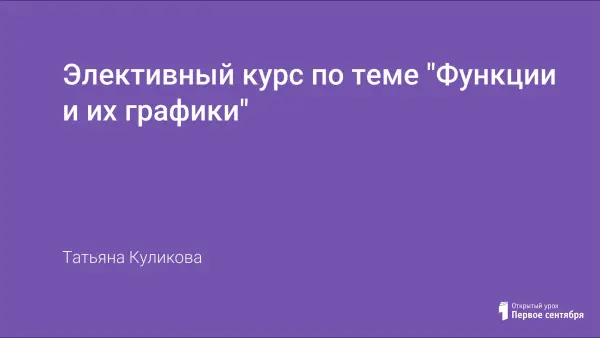 Программа элективного курса по теме «Функции и их графики» предусматривает углубление темы “Построение графиков и их преобразование”, изучаемой в курсе алгебры 7–9-х классов, и выступает дополнением базовой школьной программы.