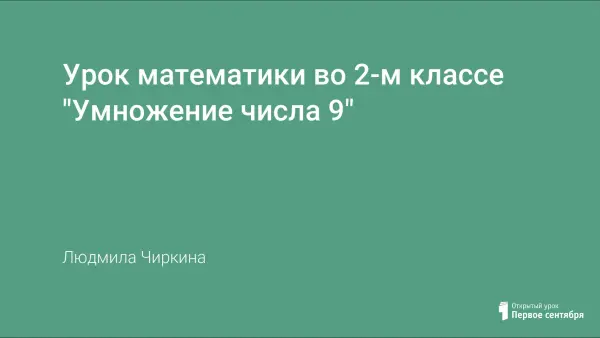 Урок по программе «Гармония». Весь материал урока направлен на отработку понимания смысла умножения. Урок содержит занимательный материал – это умножение на пальцах. Каждый этап урока отрабатывает умение умножать число 9. На уроке дети не раз убеждаются в том, что знание – это сила.