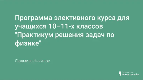 Раздел "Физика". Программа элективного курса "Практикум решения задач по физике" предназначена для учителей, работающих в классах, в которых для изучения физики выделяется два часа в неделю.