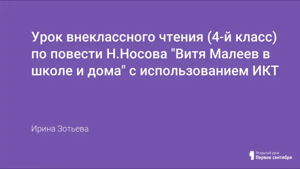 Представленный урок внеклассного чтения проводился в рамках литературной недели в начальной школе.