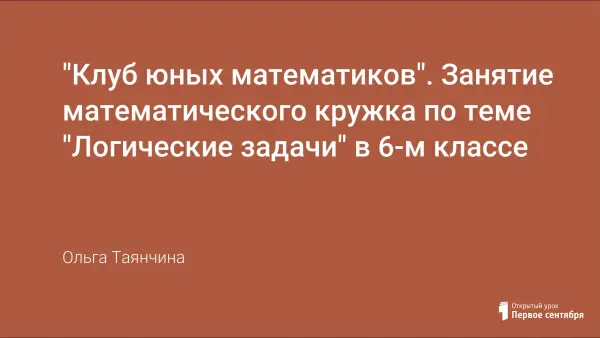 Предлагается одно из занятий математического кружка по теме "Логические задачи", которое дает возможность привить интерес к математике, проявить свои возможности и способности каждому ученику, формировать у учеников начала математического и логического мышления. На занятиях ученики получают положительный эмоциональный заряд, царит доброжелательная атмосфера.
