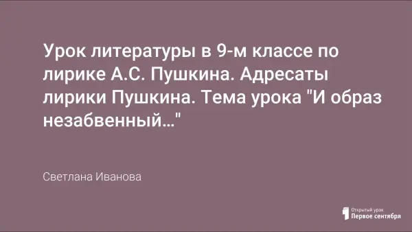Представлен урок "Адресаты любовной лирики Пушкина" по теме "И образ незабвенный...".