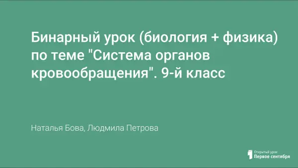 Бинарный урок (биология + физика) по теме "Система органов кровообращения". 9-й класс