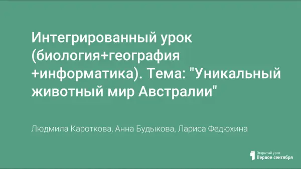 Цели урока: углубить знания обучающихся об особенностях животного мира Австралии, через межпредметные связи; развивать интерес к изучению: биологии, географии, информатики, информатики; совершенствовать умения устанавливать связи между природными компонентами; закреплять умения и навыки по созданию компьютерных слайдов и графики; развивать коммуникативные способности обучающихся через игру.