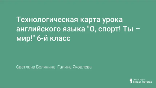 Технологическая карта урока английского языка "О, спорт! Ты – мир!" 6-й класс