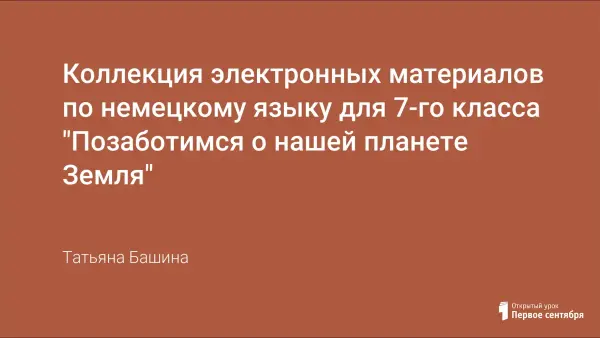 Представленная коллекция электронных материалов является дополнением к учебнику И.Л. Бим для 7-го класса к § 5 «Позаботимся вместе о нашей планете Земля», дает возможность более эффективного применения информационных технологий, обогащает учебный процесс иллюстративным и справочным материалом, который значительно расширяет зрительный ряд предъявляемой информации.