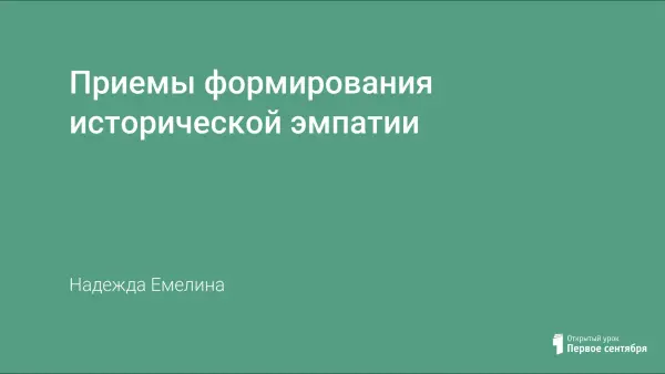 Одним из приемов формирования исторической эмпатии являются приемы повествования, и в частности, сюжетный повествовательный рассказ. Другим приемом формирования исторической эмпатии является персонификация. В его основе - придуманный сюжет о судьбе, действиях, условиях жизни, поступках вымышленного человека.